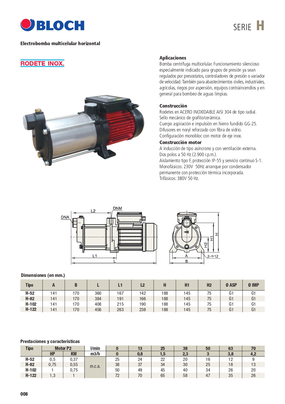 Monofásicos: 230V 50 Hz arranque por condensador permanente con protección térmica incorporada.