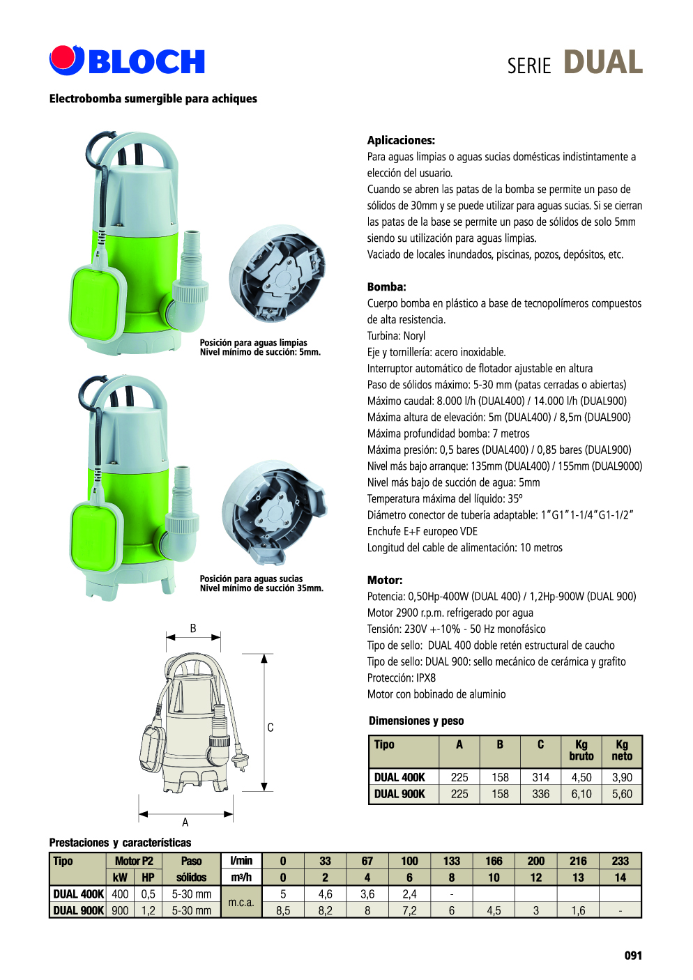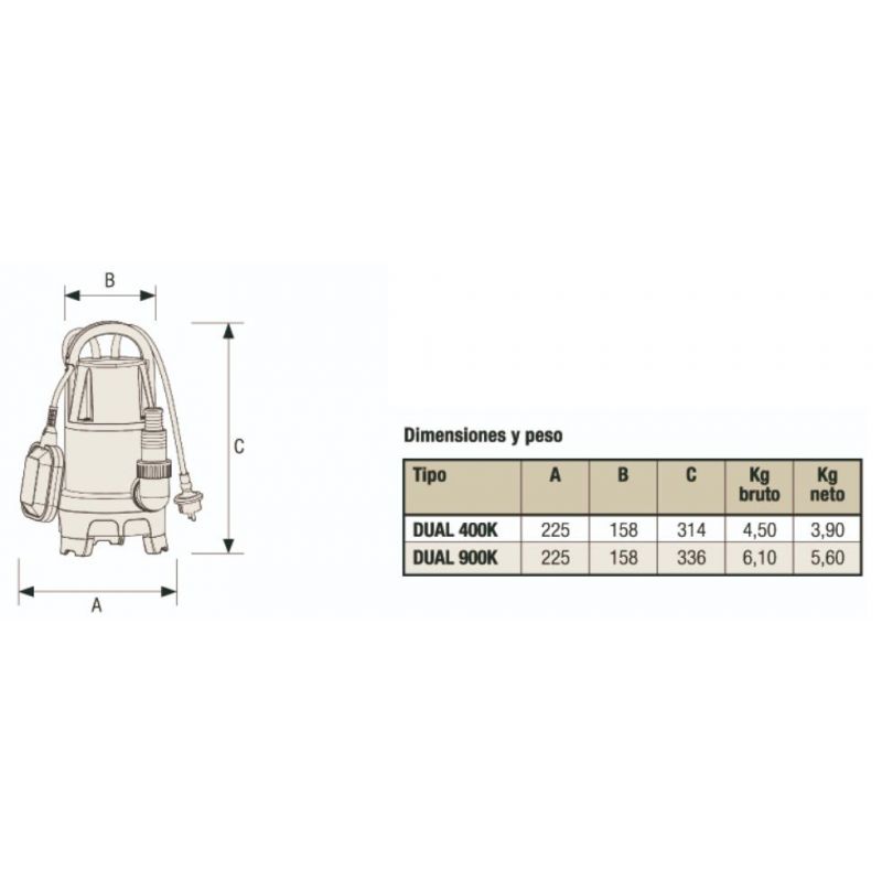 Datos técnicos de la bomba sumergible DUAL 900K