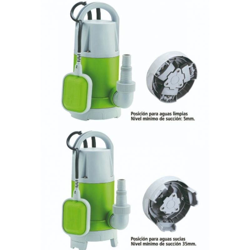 Gracias a su sistema de patas ajustables, permite un paso de sólidos de hasta 30 mm para aguas sucias, mientras que, al cerrarlas, logra una succión de sólo 5 mm, ideal para aguas limpias. Su construcción en tecnopolímero, combinada con un eje de acero inoxidable y una turbina de noryl, proporciona una gran resistencia y fiabilidad.