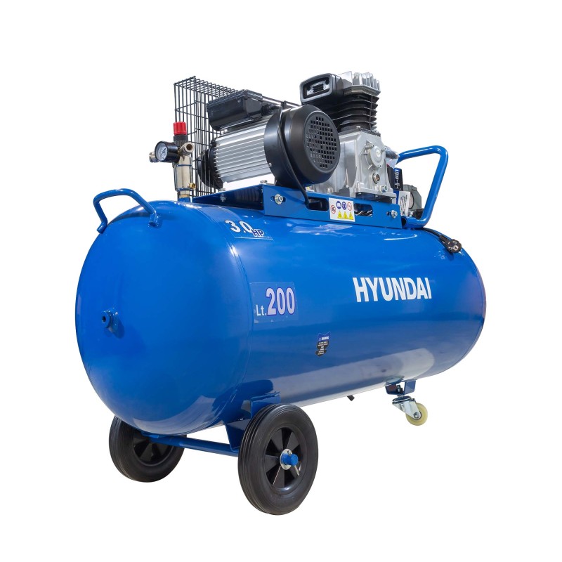 El HYACB200-31 es un modelo compacto que se puede transportar fácilmente gracias a su asa ergonómica y a sus ruedas de 10 cm de diámetro. Su accionamiento por correa y sus protectores metálicos proporcionan un funcionamiento seguro y confiable a la vez que reduce las vibraciones y el nivel de ruido.