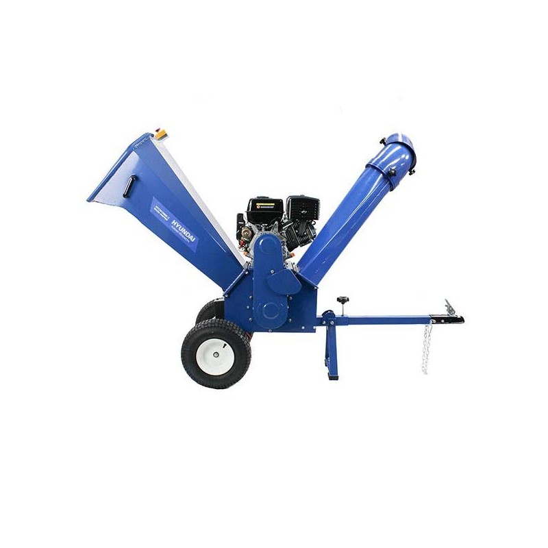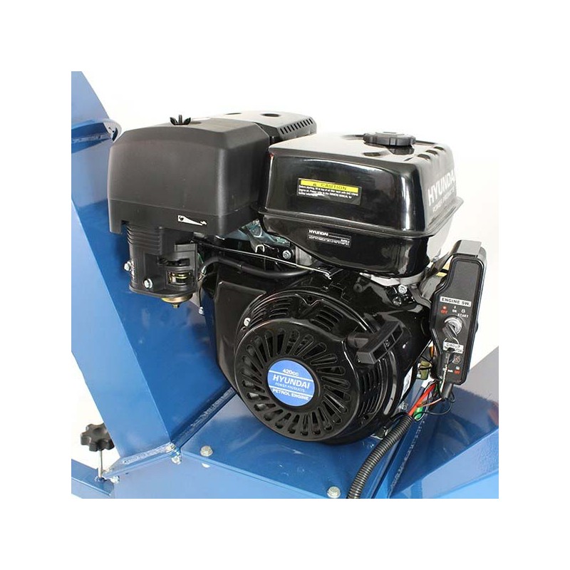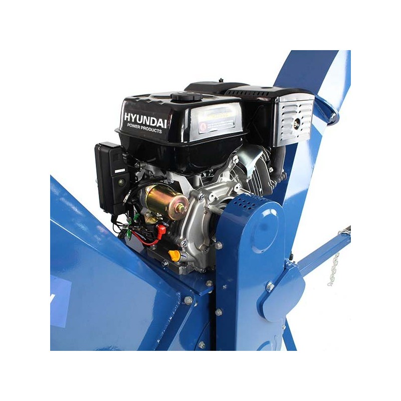 Astilladora de madera con motor de 4 tiempos a gasolina HYUNDAI. Con la capacidad de cortar ramas de hasta 8,5 cm. con un astillado máximo de 100 mm.