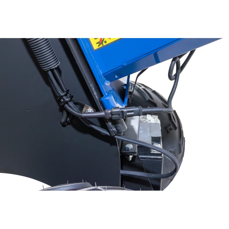 La HYAST350-PRO cuenta con certificación TUV CE, lo que garantiza su seguridad y calidad. Con dimensiones compactas y un peso de 252 kg, es fácil de transportar gracias al enganche de remolque (no homologado para carretera) y sus neumáticos de 16*8-7. Ideal para profesionales que buscan productividad y resistencia en sus proyectos.