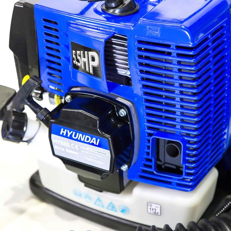 El soplador HYB85 de Hyundai cuenta con un motor de 2 tiempos y una cilindrada de 82,4cc, ofreciendo una velocidad del aire de hasta 490 km/h, ideal para tareas de limpieza y mantenimiento del jardín.