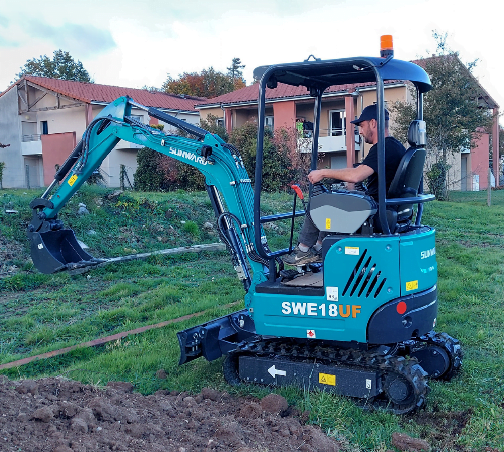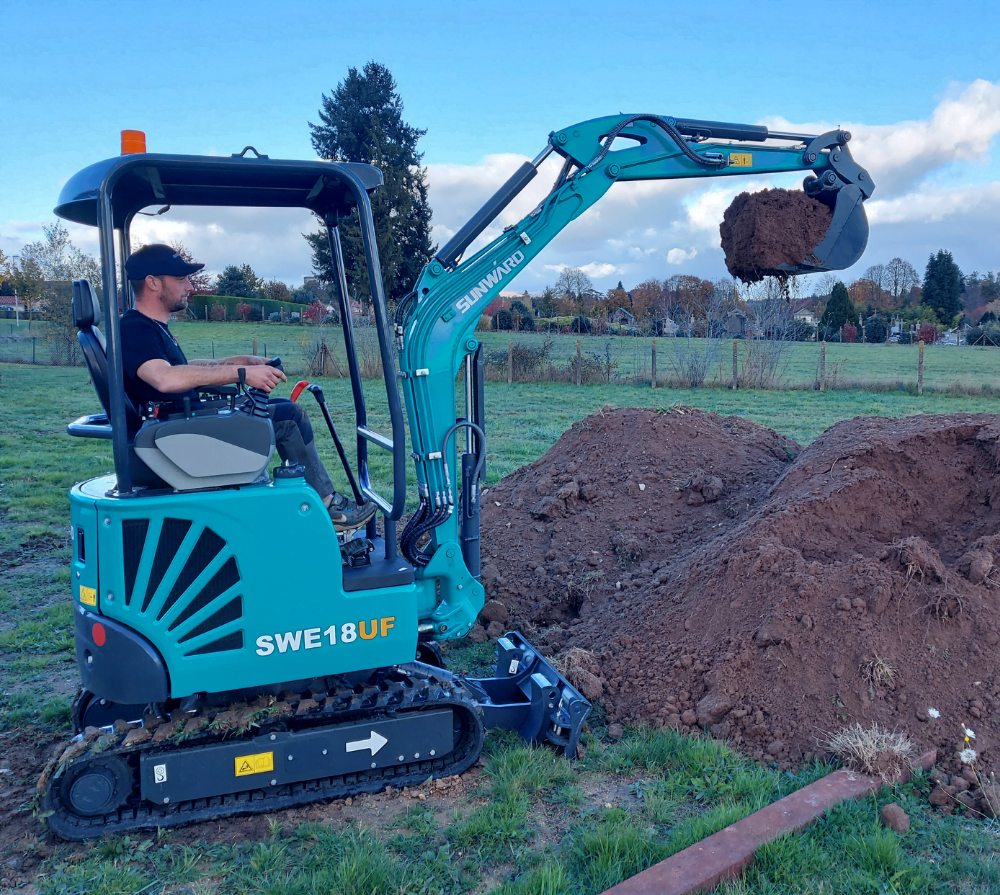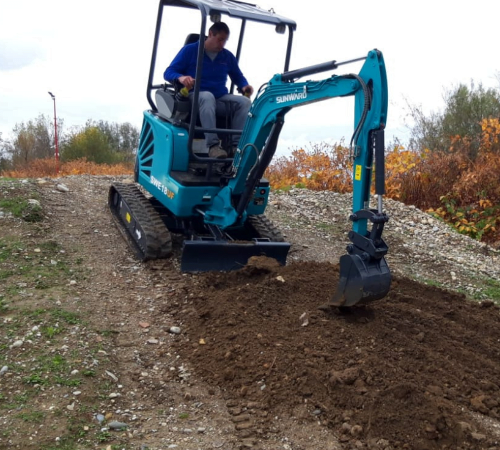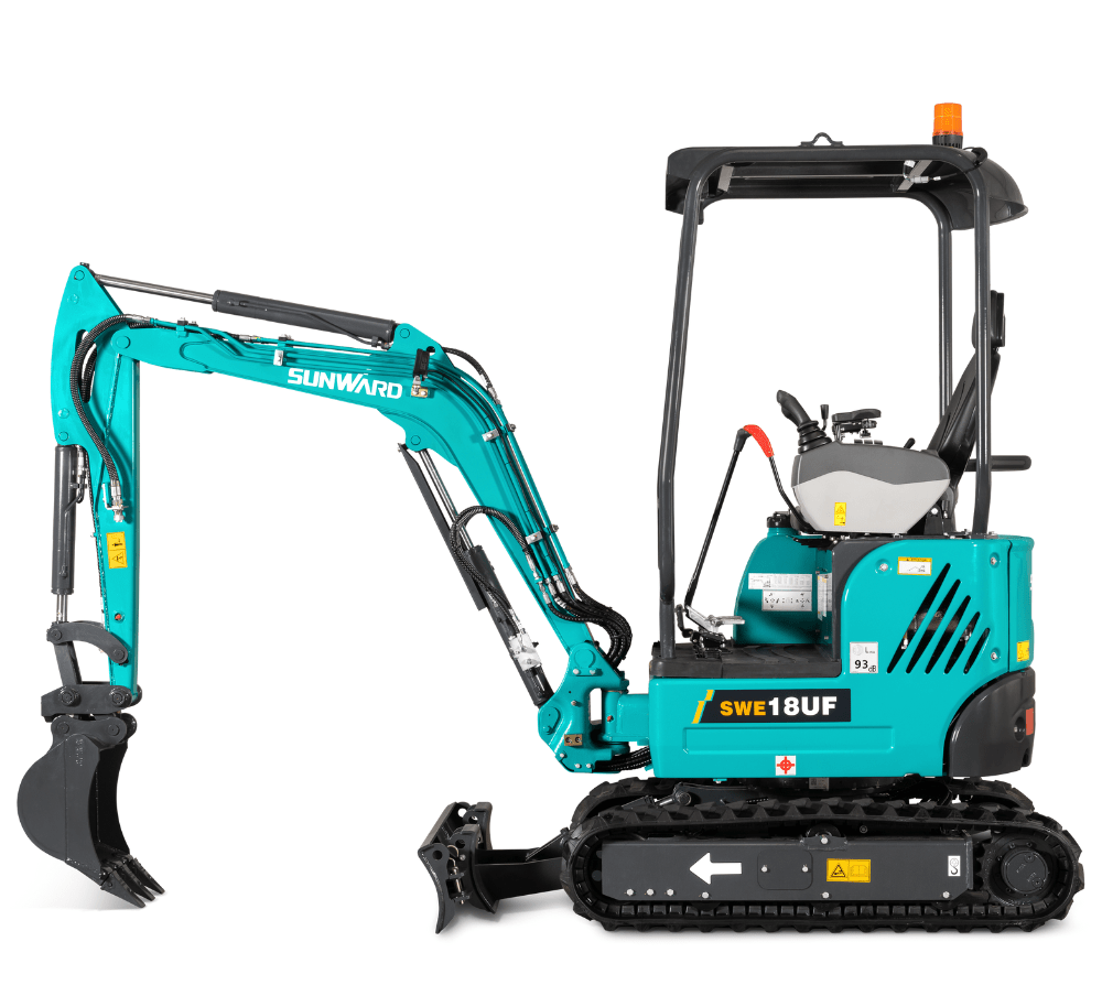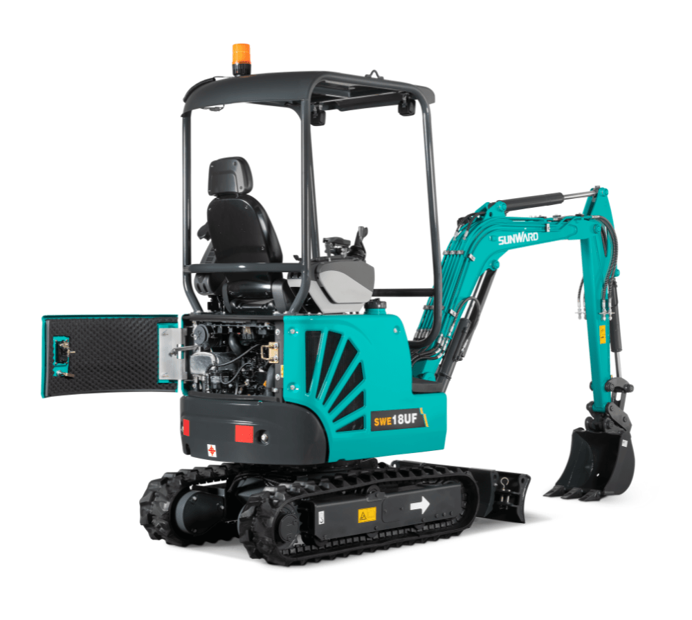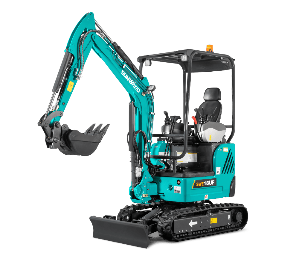 La Sunward SWE 18UF es una miniexcavadora con dosel de 4 polos construida para esquinas pequeñas y condiciones de trabajo estrechas.