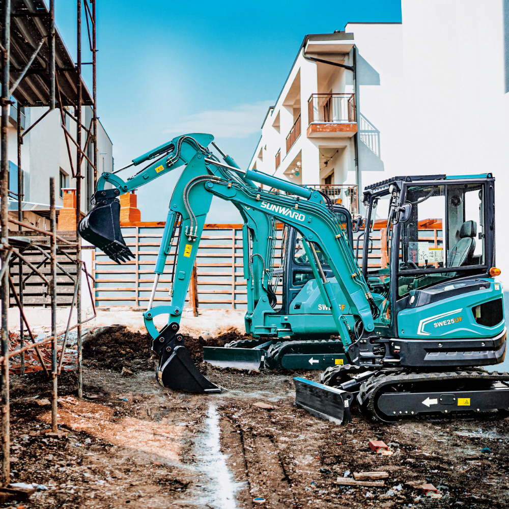 La miniexcavadora Sunward SWE 25UF es la versión sin cola de las miniexcavadoras SWE 25F.